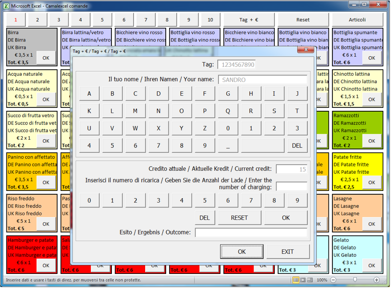 Ulteriori funzioni di excel comande:- rilascio di tags con o senza credito già precaricato