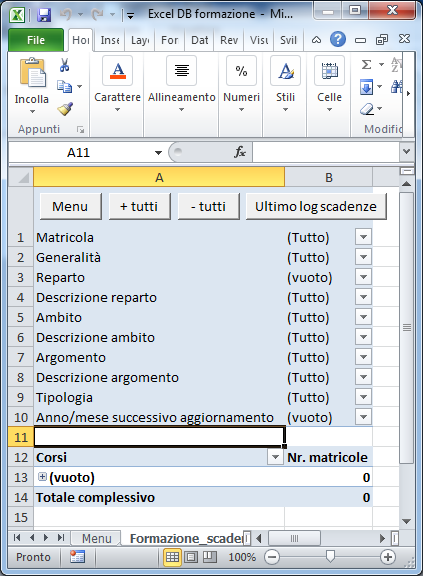 Tra i numerevoli possibili utilizzatori di excel db formazione segnaliamo:- aziende con personale tenuto alla frequenza di corsi (sulla sicurezza, di formazione e di qualsiasi altro genere)